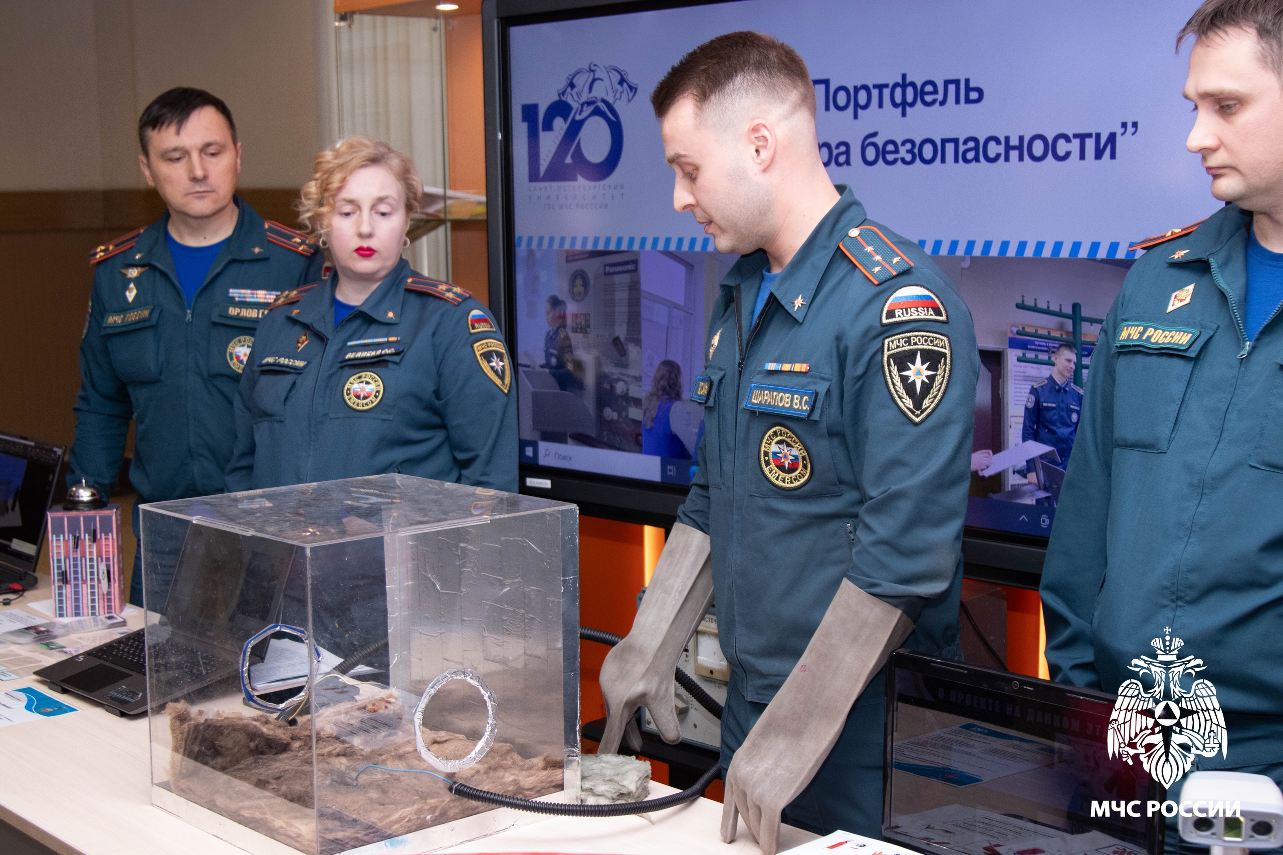 Все работы объединены в тематические портфели. Такое деление неслучайно, оно отражает ключевые задачи развития университета и МЧС России:
